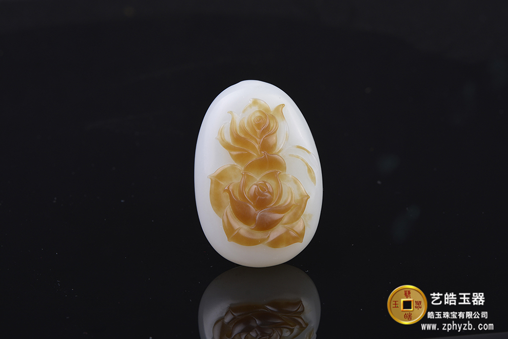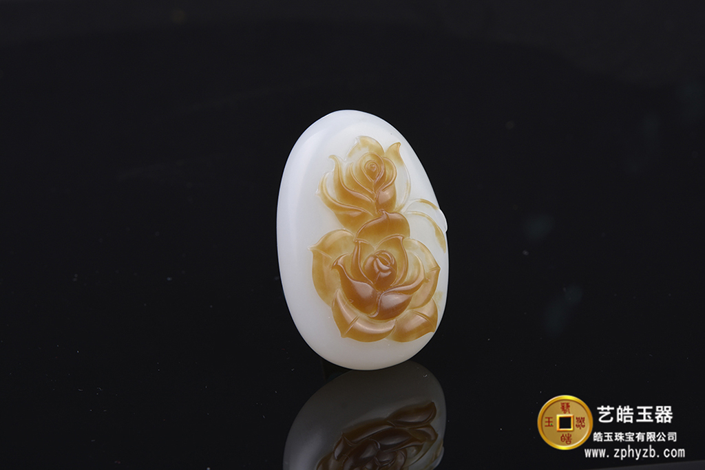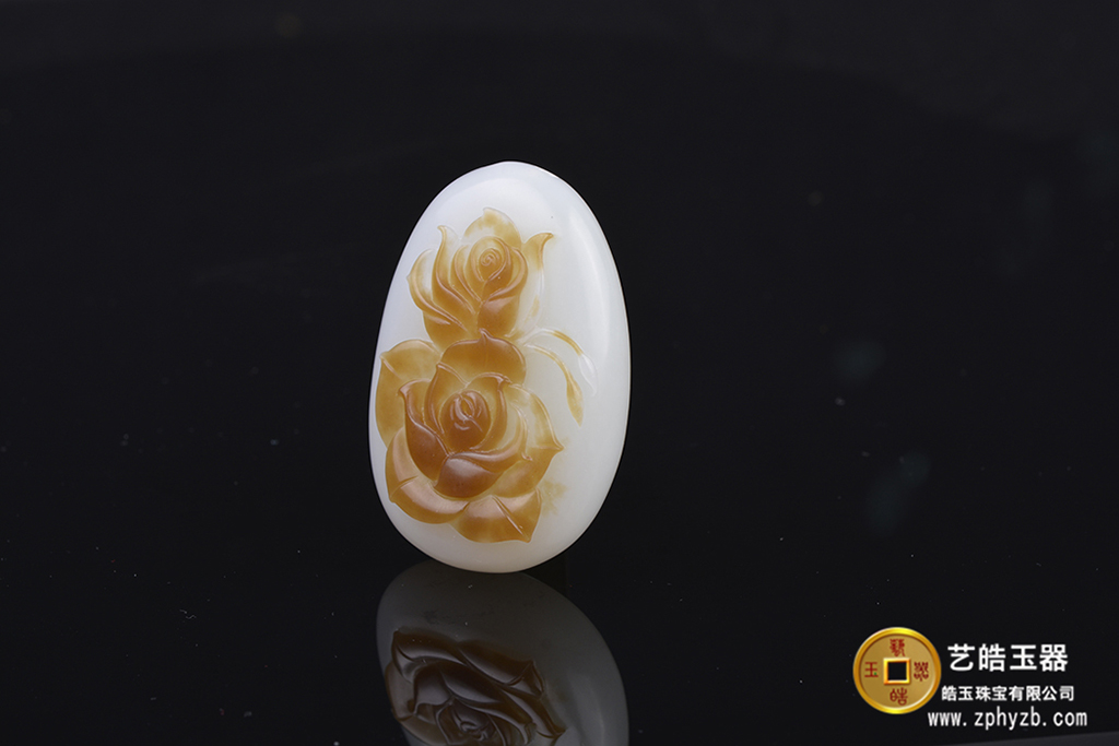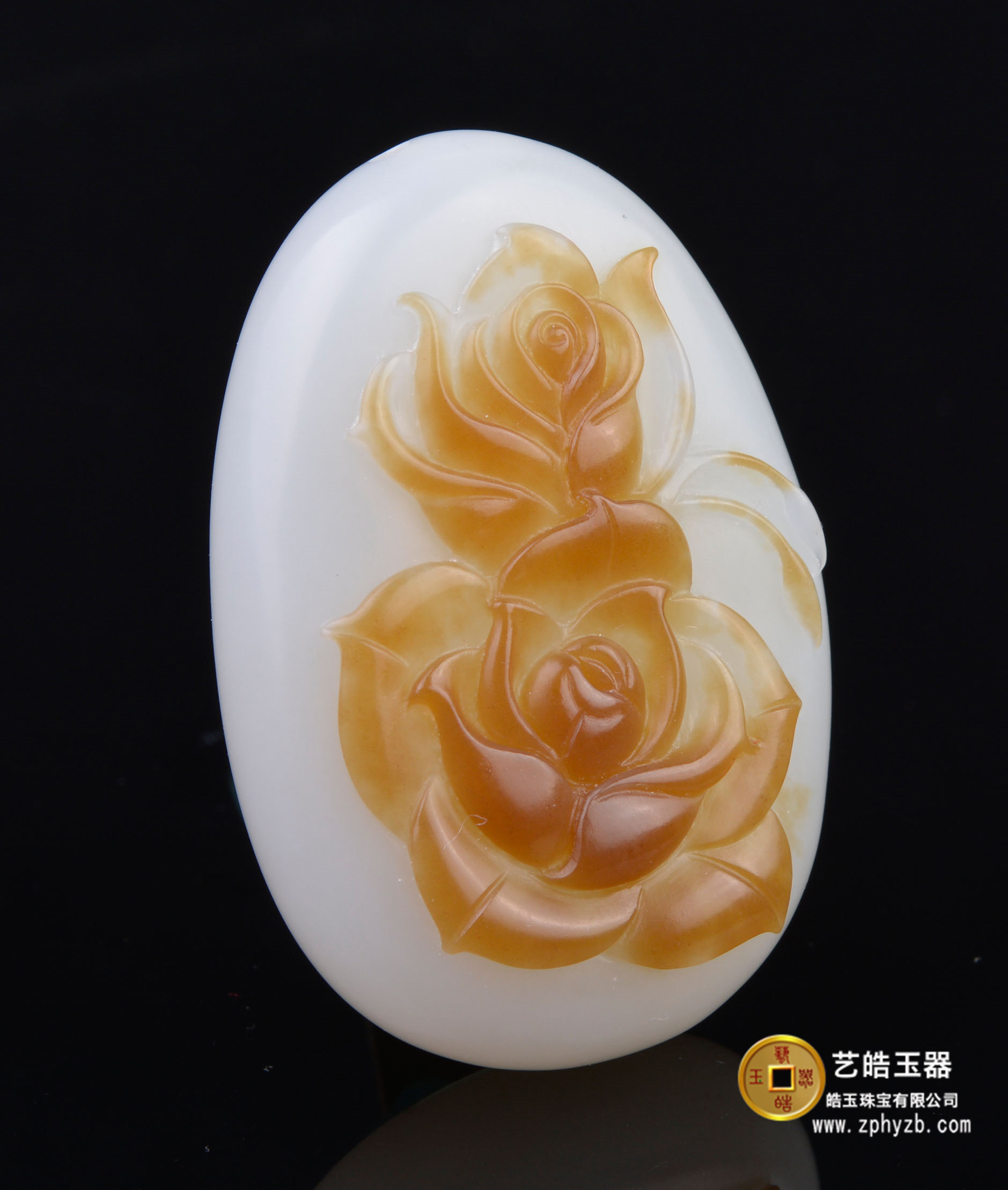 艺皓天然精品糖白羊脂和田玉 花开富贵把件 挂件 带收藏证书