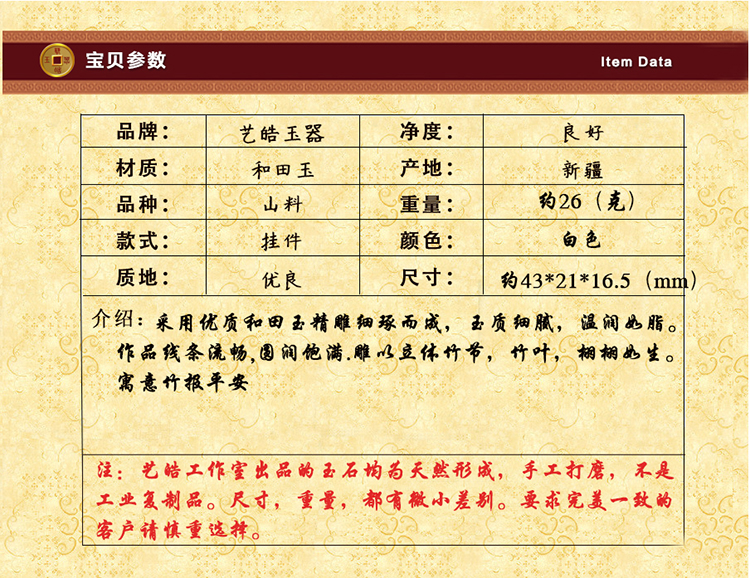 艺皓天然精品精工和田玉竹报平安手把件 车挂 带收藏证书