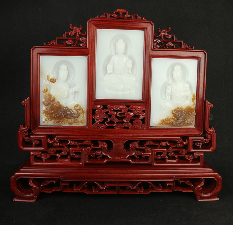 喜讯!喜讯! 艺皓玉器,镇平县皓玉珠宝有限公司。作品:西方三圣编号:10112003和作品:聚白财编号:10112017。两件作品荣获河南省2016年第十届陆子冈杯,金奖, 西方三圣编号:10112003欣赏 聚白财编号:10112017欣赏