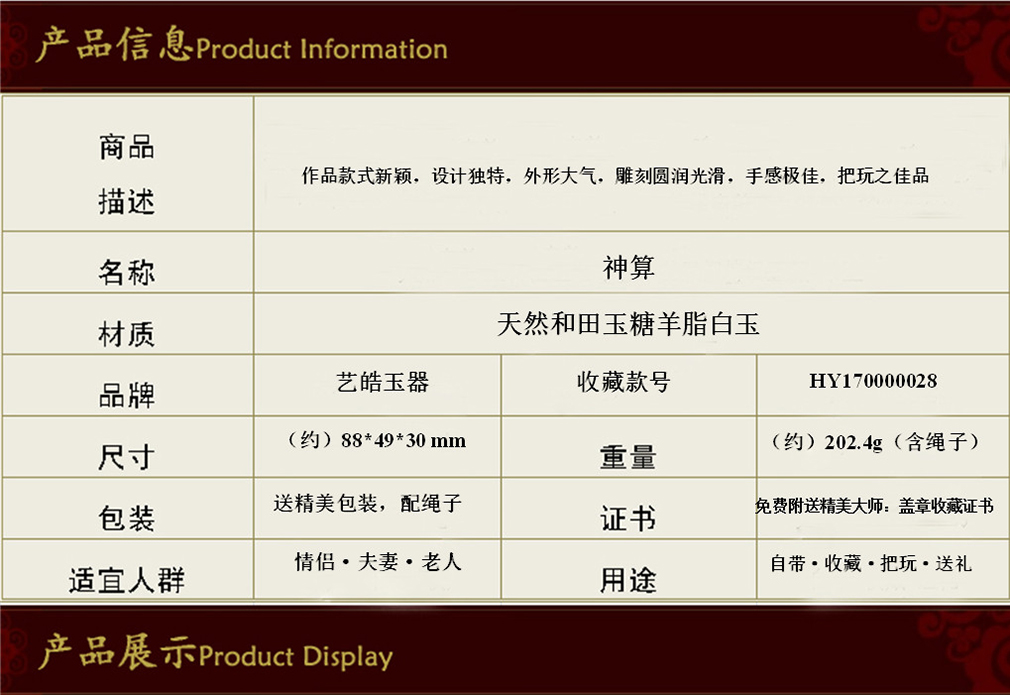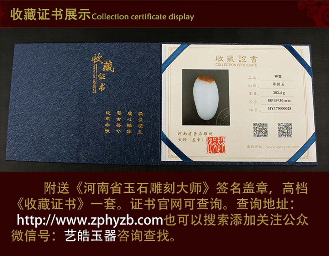 艺皓天然精品精工和田玉岁岁平安手把件 车挂 带收藏证书