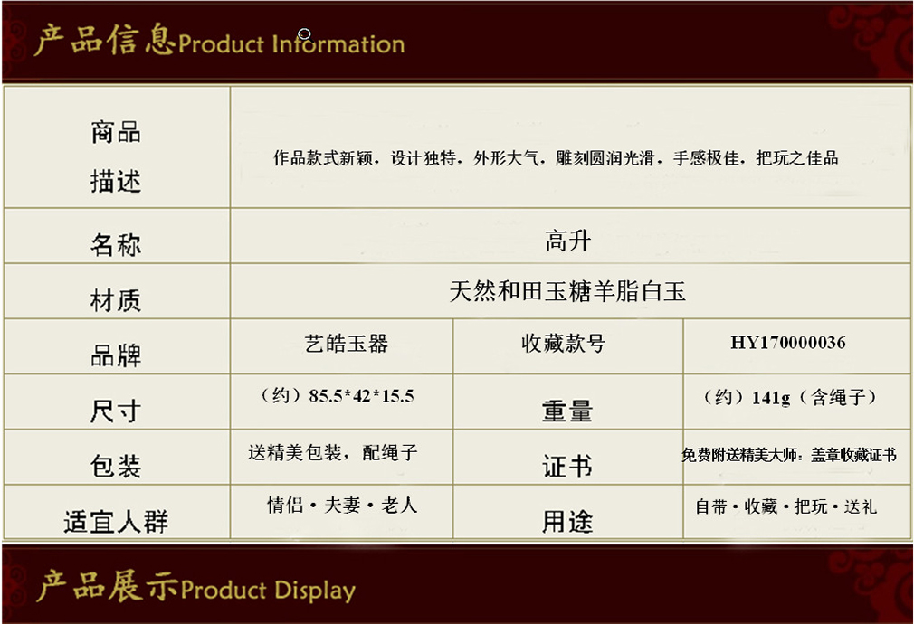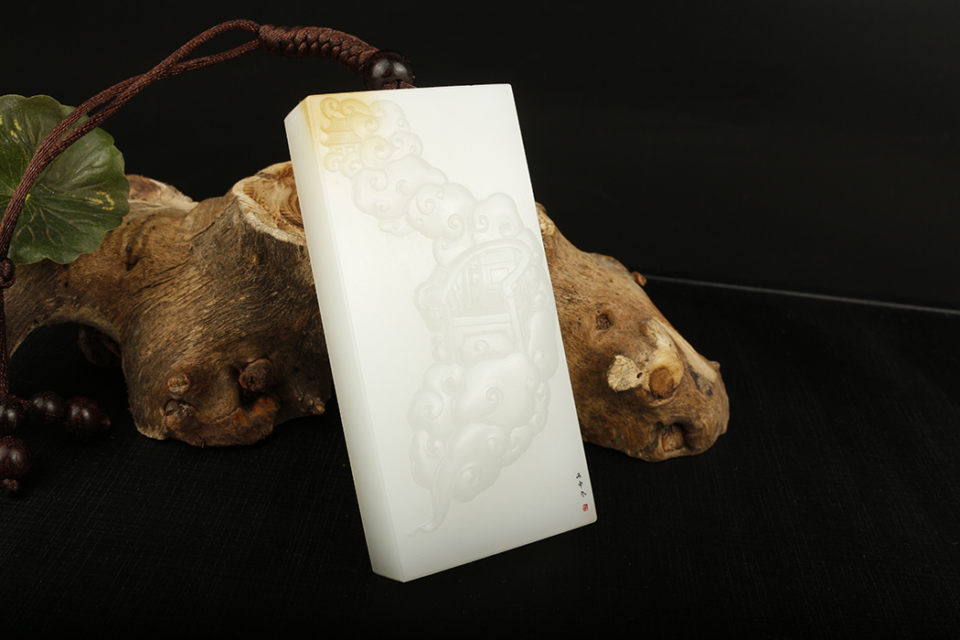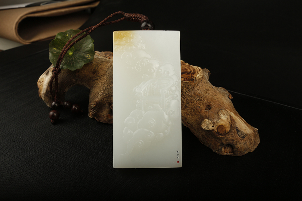 艺皓天然精品精工和田玉岁岁平安手把件 车挂 带收藏证书
