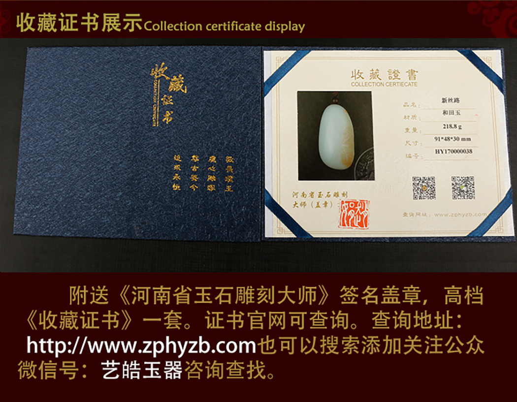 艺皓天然精品精工和田玉岁岁平安手把件 车挂 带收藏证书