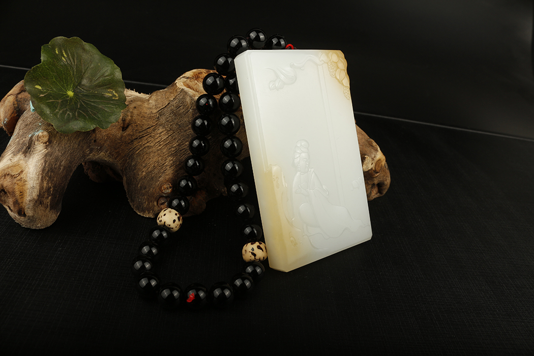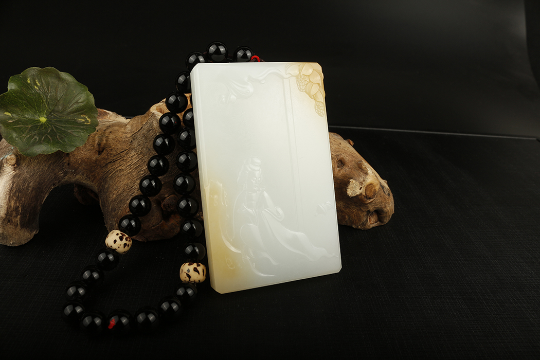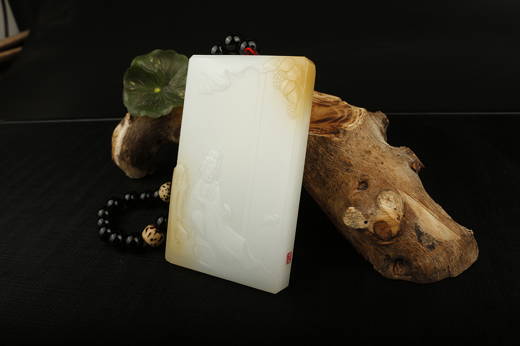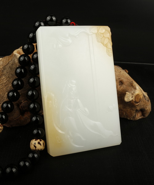 艺皓天然精品精工和田玉岁岁平安手把件 车挂 带收藏证书