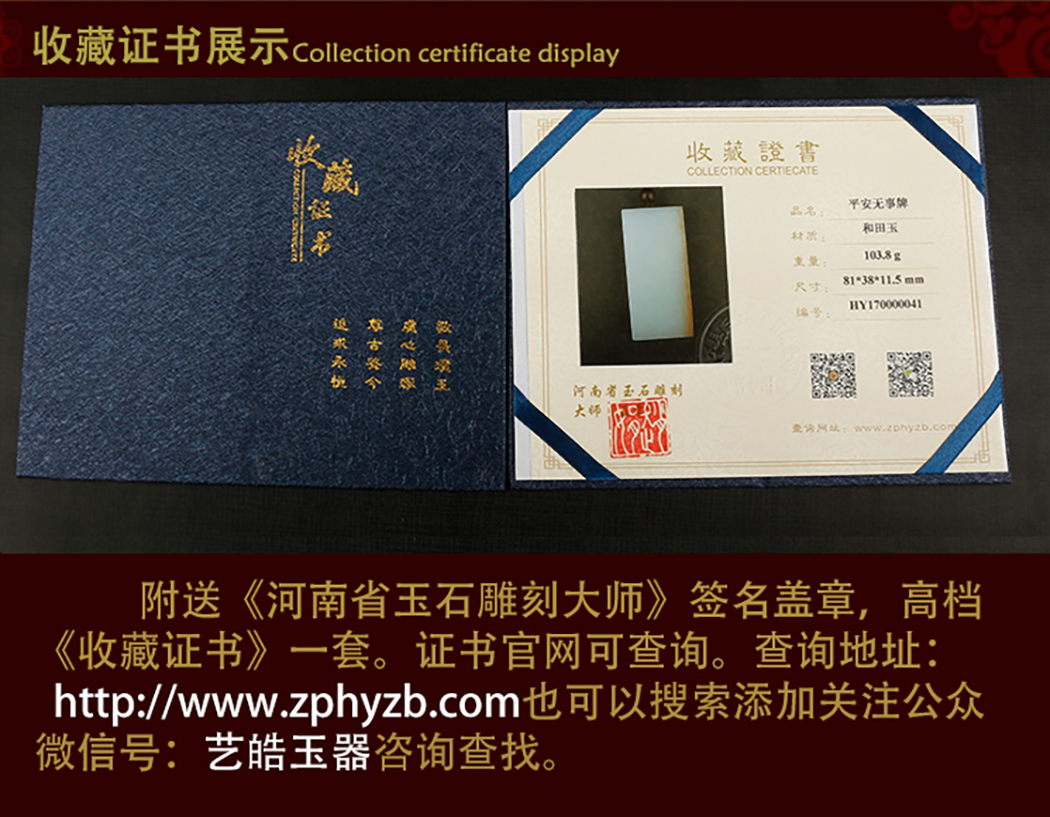 艺皓天然精品精工和田玉岁岁平安手把件 车挂 带收藏证书