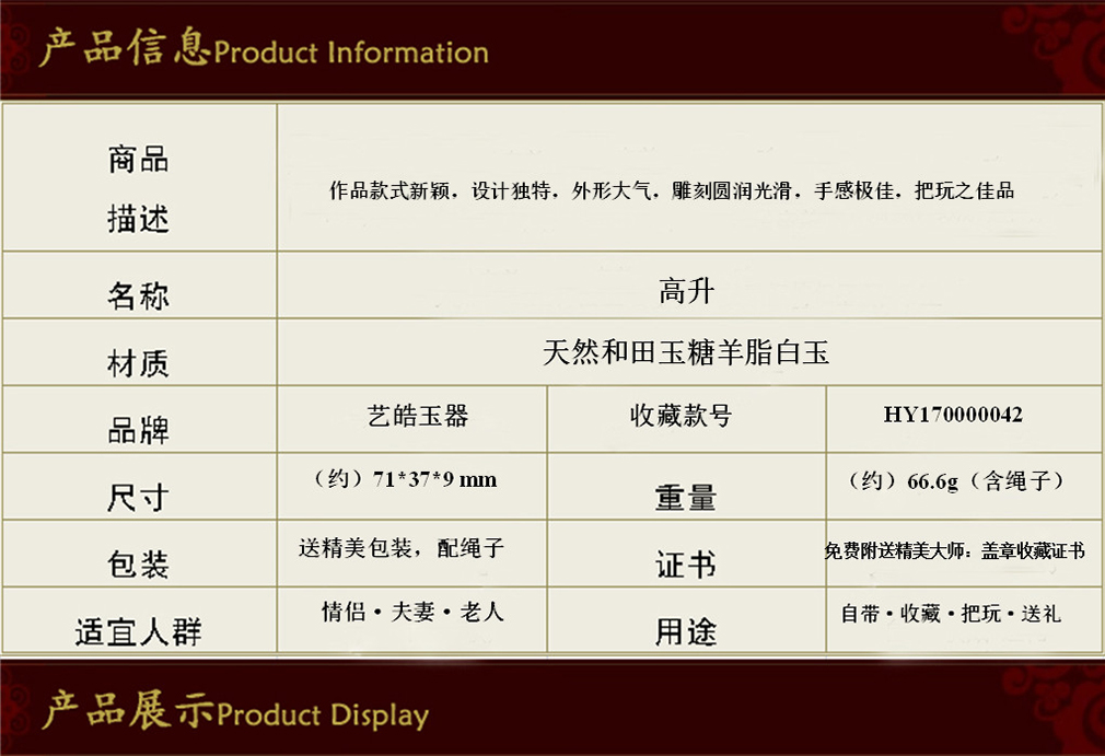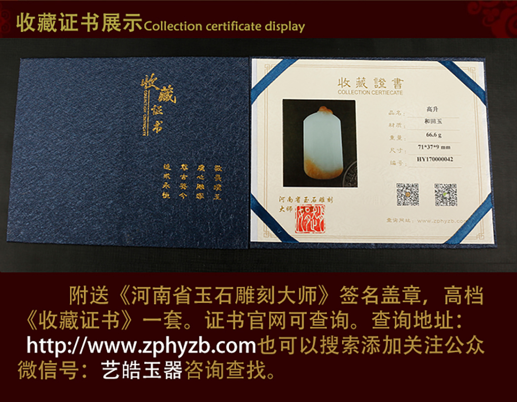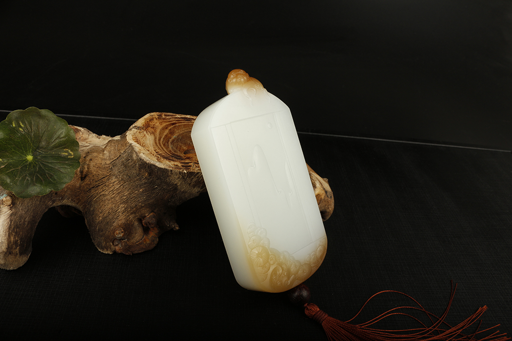 艺皓天然精品精工和田玉岁岁平安手把件 车挂 带收藏证书
