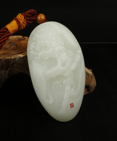 艺皓天然精品和田玉把件一鸣惊人 车挂带收藏