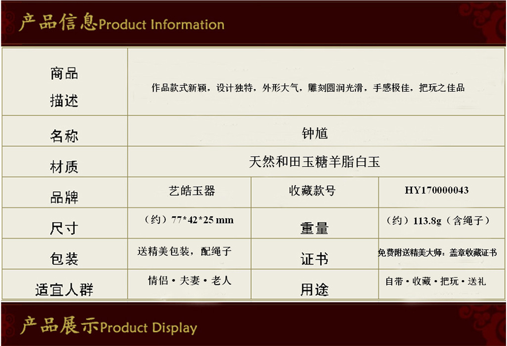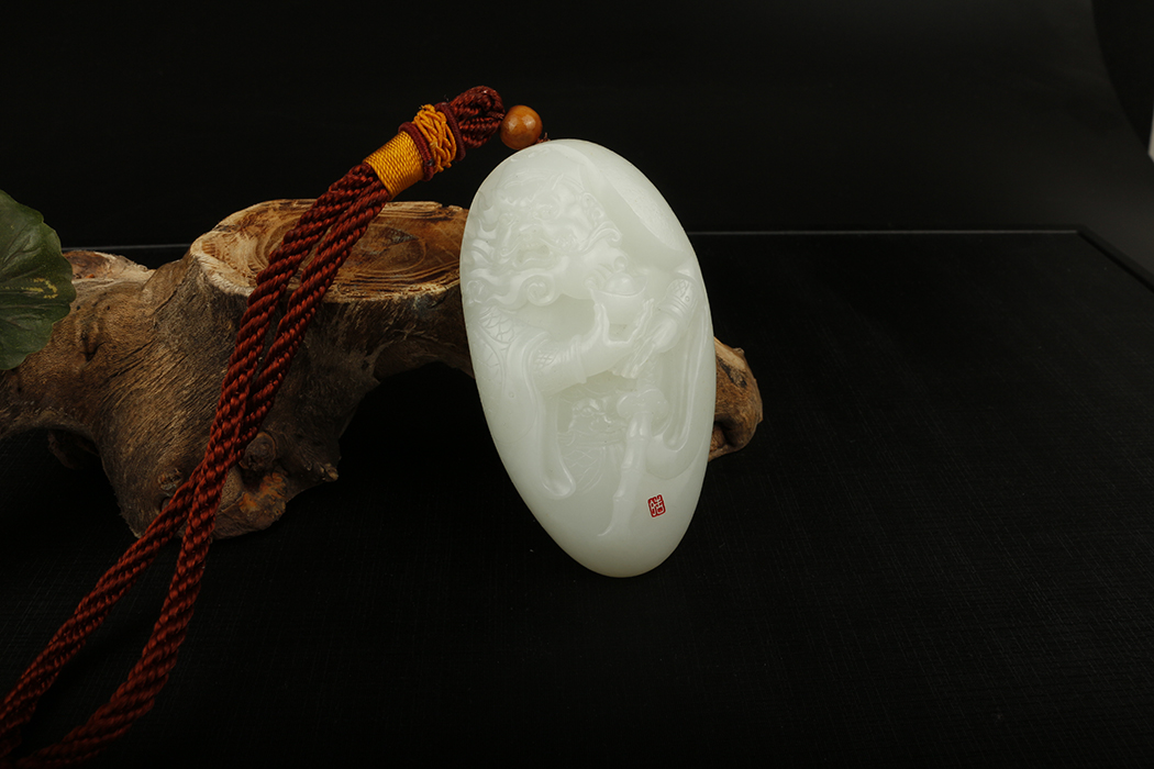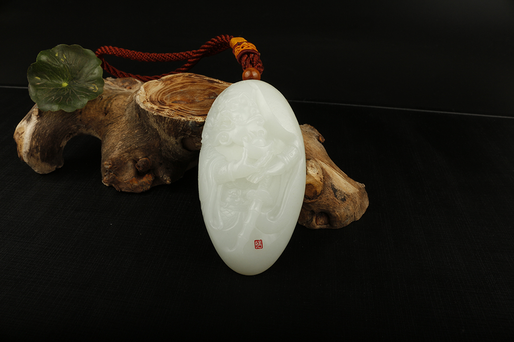 艺皓天然精品精工和田玉岁岁平安手把件 车挂 带收藏证书